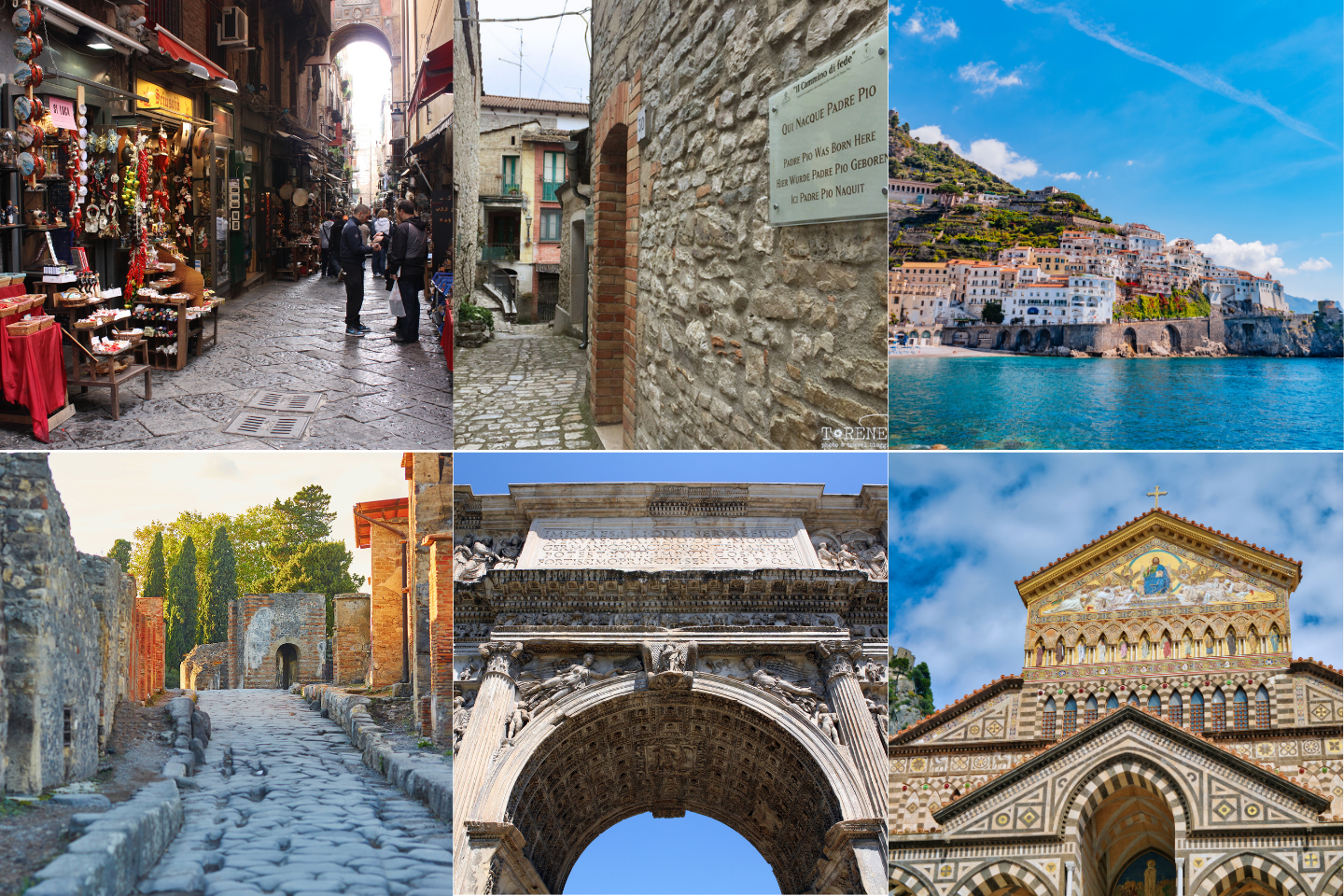 Amalfi, Salerno, Pompei, Napoli, Pietrelcina e altre località mozzafiato.